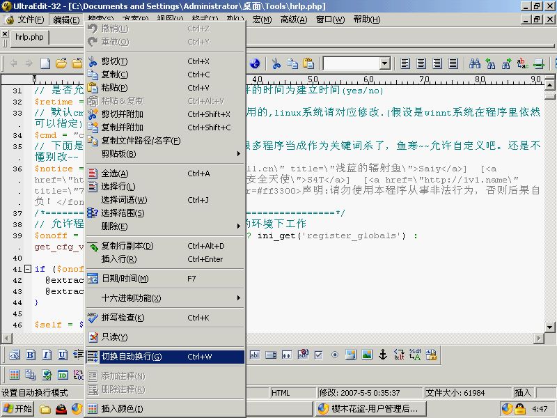 UE真是太强大了。。。功能太多以至于我都没找到它自动换行在哪调。。。